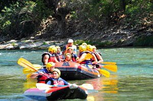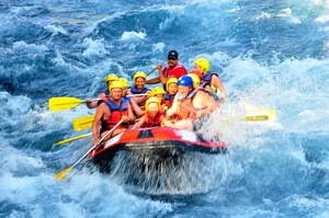 Rafting tour and equipment (raft, kayak, paddle, vest, helmet)